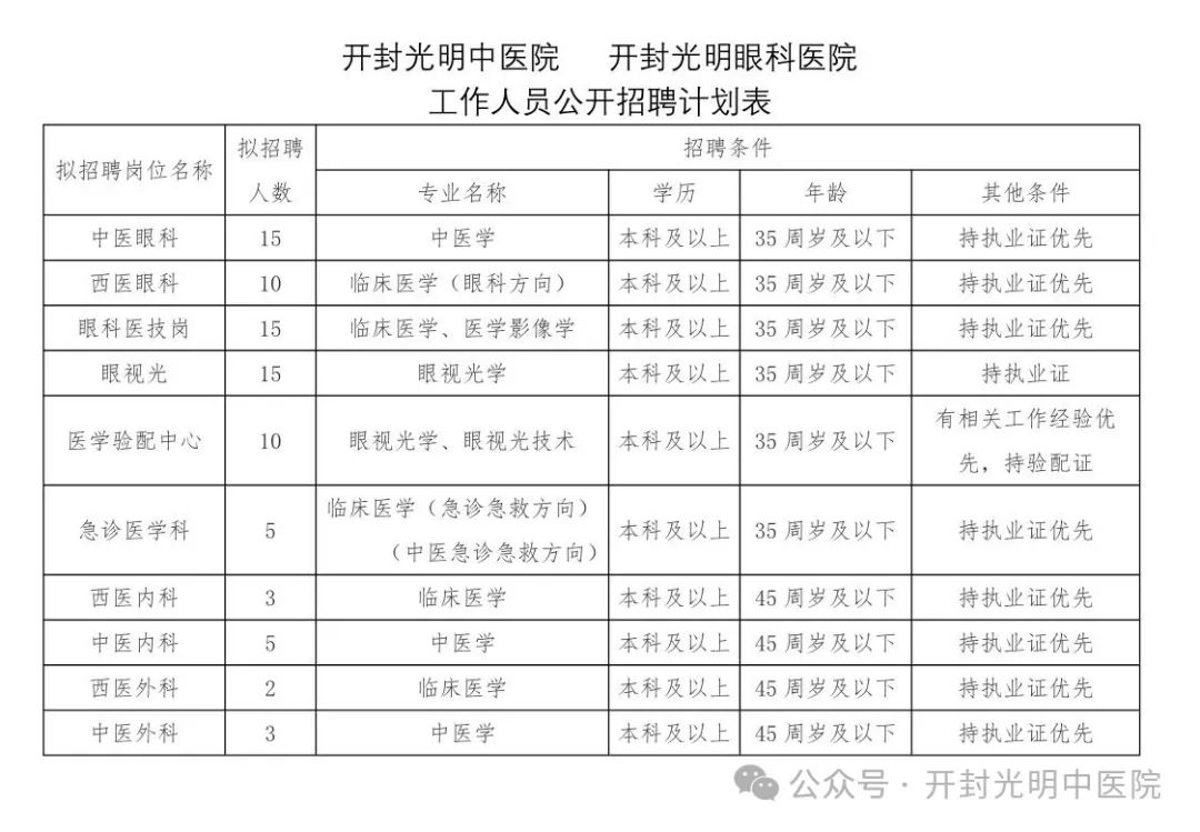 微信公众号-开封光明中医院-在线服务-招聘专栏