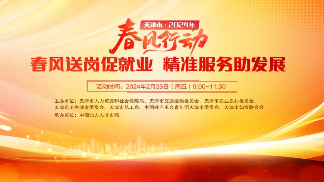 为全面贯彻落实党的二十大和二十届二中全会精神,坚决落实党中央、国务院关于就业工作决策部署,做好春节前后劳动者换岗流动高峰期和企业复工复产关键期就业工作,全力稳就业、保用工、促发展,天津市人力资源和社会保障局定于2月23日在天津人力资源发展促进中心举办天津市2024年春风行动招聘会。具体通知如下: