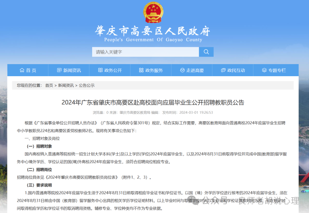2024年广东省肇庆市高要区赴高校面向应届毕业生公开招聘教职员公告