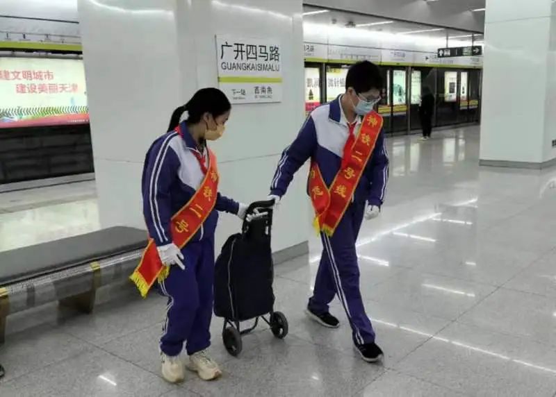 2月28日上午10:00,我校集中组织学生代表前往天津地铁二号线广开四马路站进行志愿服务。学生们在售票机,进站口,电梯间,上车口发挥自己的力量,帮助有需要的乘客顺利进站上车。