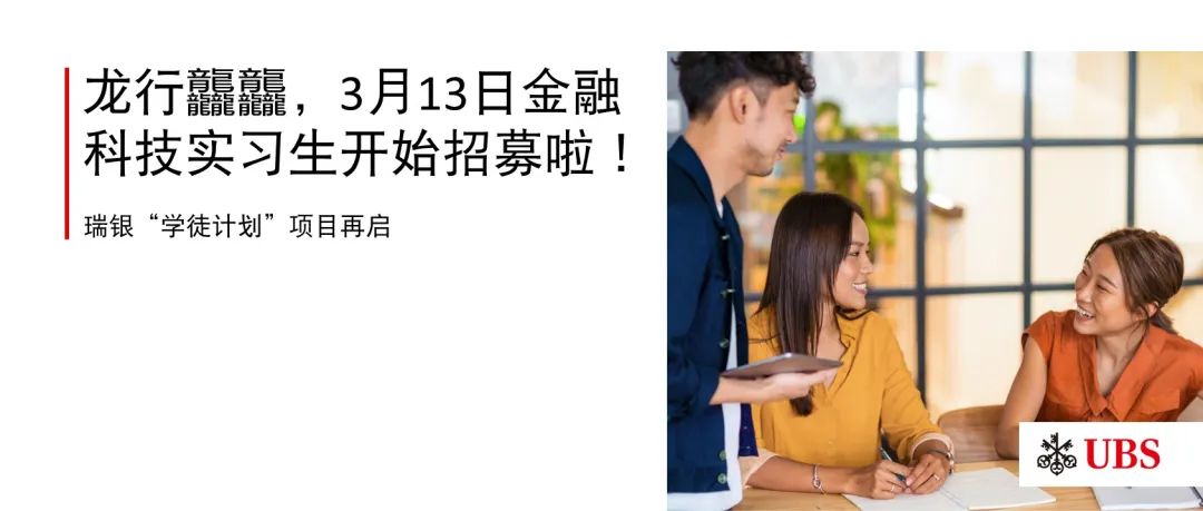 申请通道: | 点击下方链接直接申请或者发送您的简历至公共邮箱 sh-qa-shanghai@ubs.com并在标题处注明“Apply Fintech Apprentice”。 |
