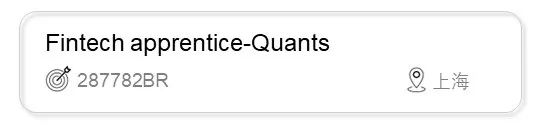 申请要求: | ▪ 本科及以上学历 ▪ 2024年12月至2025年6月期间毕业 ▪ 计算机,金融工程,金融数学,统计,大数据等相关专业 |