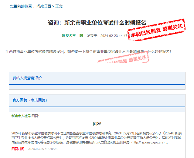 (新余市人社局最新回复)