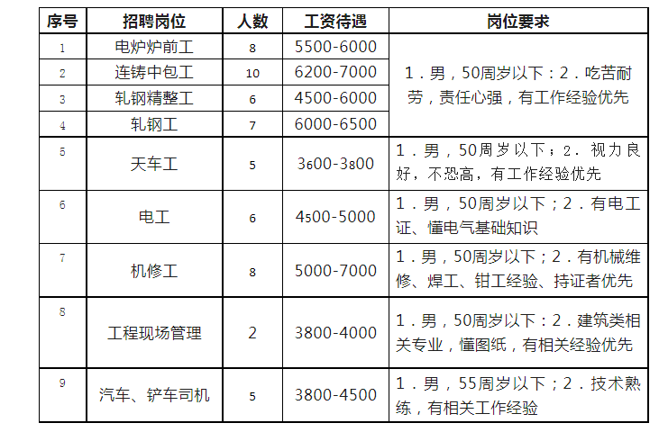 因公司长期发展需要,现面向社会招聘员工数名,部分岗位、待遇如下:
