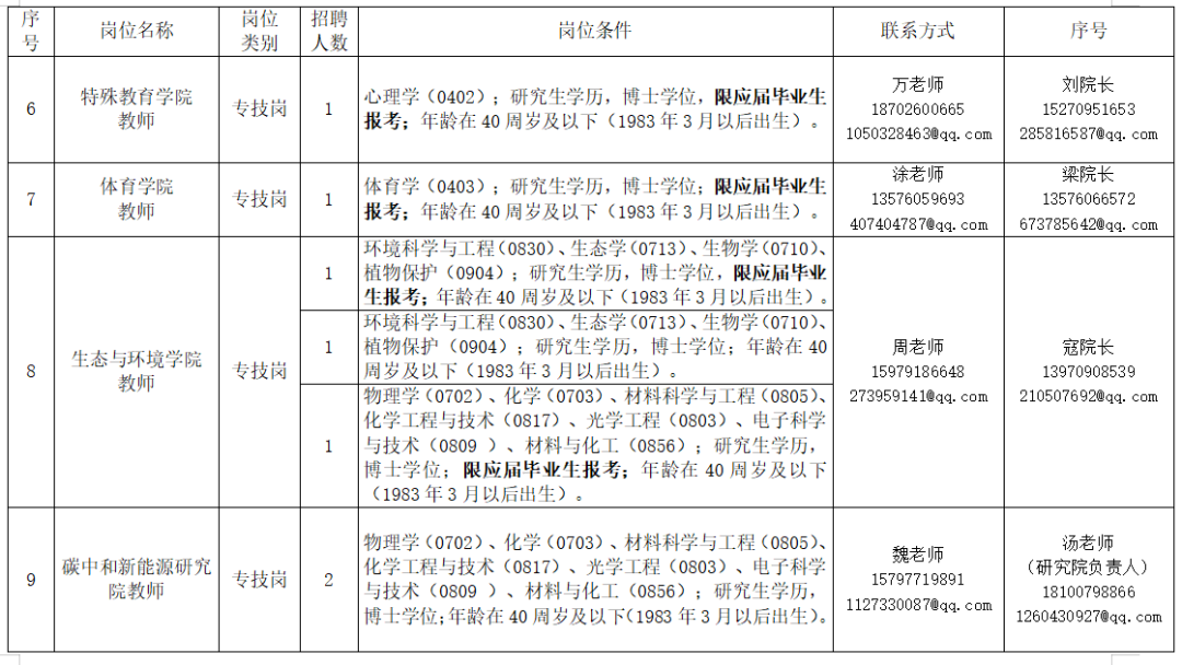 豫章师范学院2024年面向社会公开招聘博士研究生岗位表