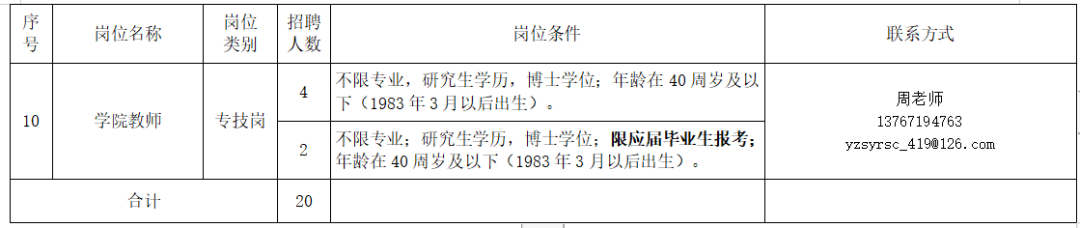 (校人事处招聘邮箱:yzsyrsc_419@126.com)