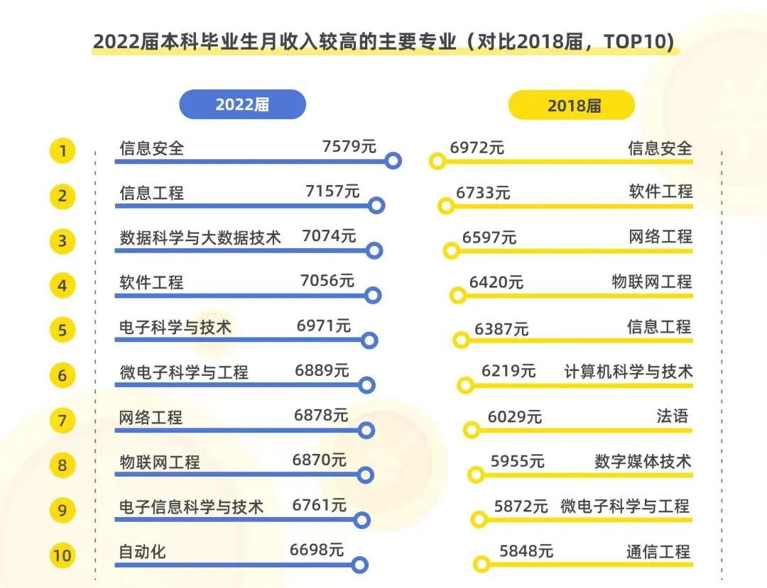 根据麦可思发布的《2023年中国本科生就业报告》,本科10大高薪专业基本都被与IT紧密相关的计算机类和电子信息类包揽。