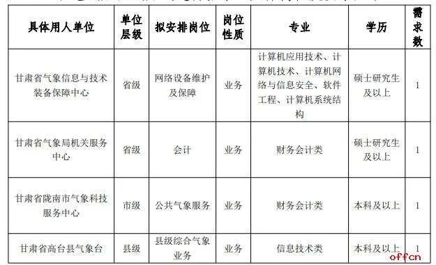 根据《气象部门事业单位公开招聘人员管理办法》和《甘肃省气象部门事业单位公开招聘应届高校毕业生实施细则》的要求,为满足甘肃省气象局事业单位工作需要,本阶段面向应届高校毕业生公开招聘工作人员 4 名。现就有关事项公告如下: