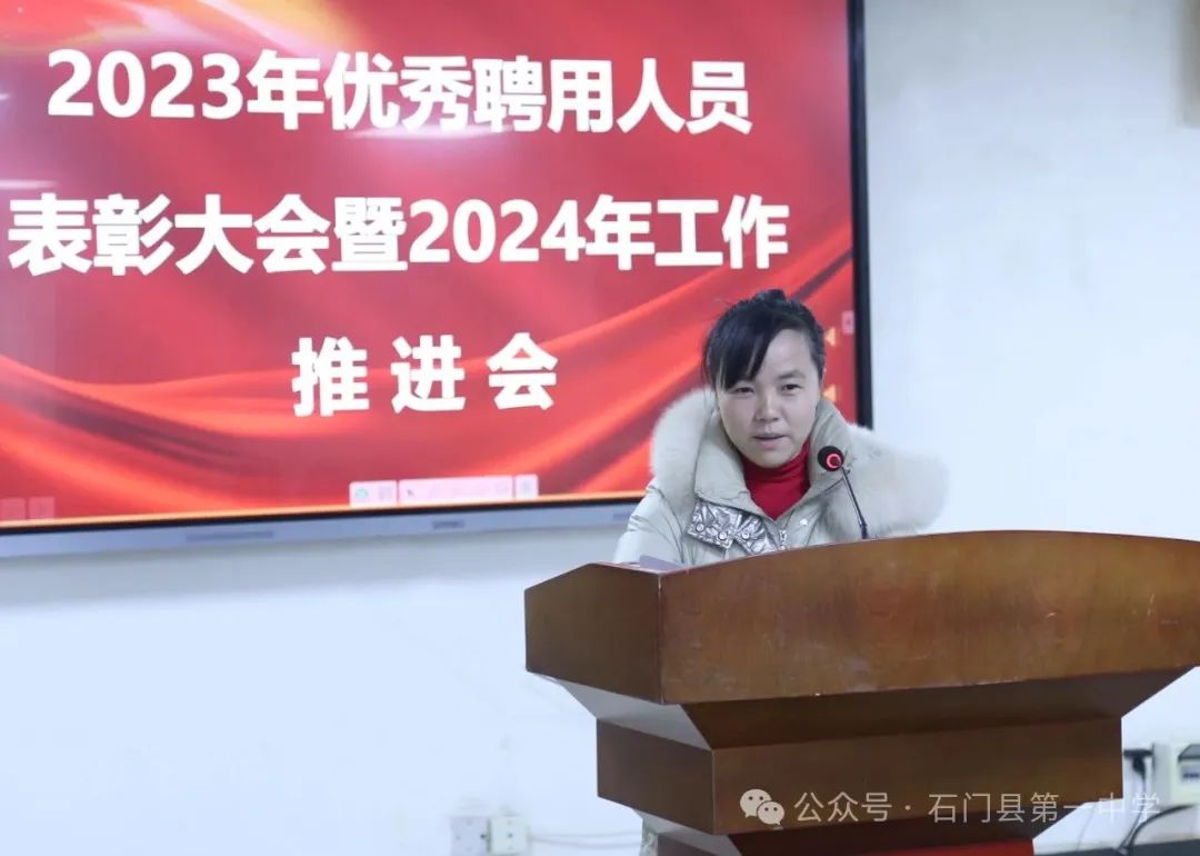 本网讯(通讯员 覃若彬 欧文博 文/图)“在石门一中,只要你努力,任何一个岗位都能创造出彩成绩受到表彰!”3月4日下午,石门一中在信息楼一楼会议室召开全体聘用人员会议,表彰2023年度为学校发展做出突出贡献的优秀聘用员工。