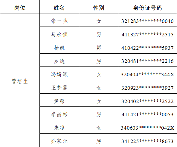 按照《常州市2023年选聘优秀高校毕业生“国企专招”计划公告》要求,考察、体检合格人员列为拟聘用人选,现将考察、体检合格人员予以公示,公示时间为2024年3月4日至2024年3月8日。