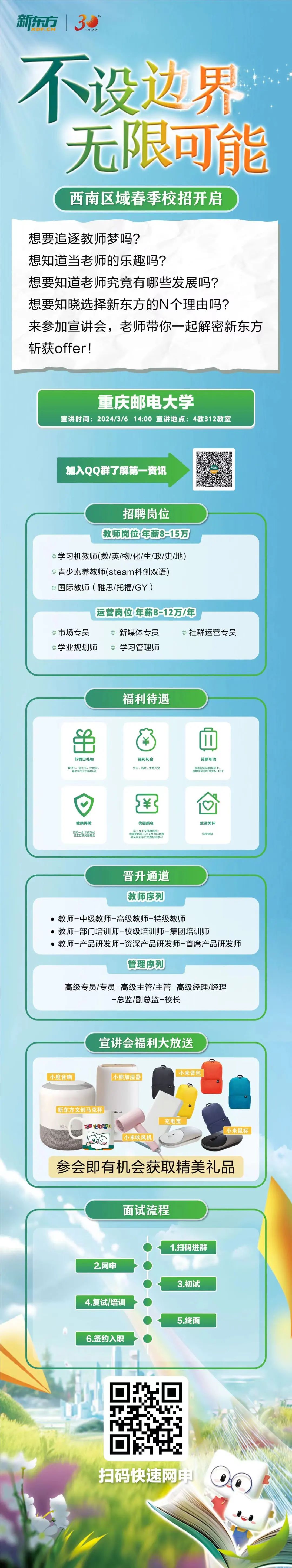 >【校园招聘】重庆新东方教育培训学校有限公司2024届校园招聘