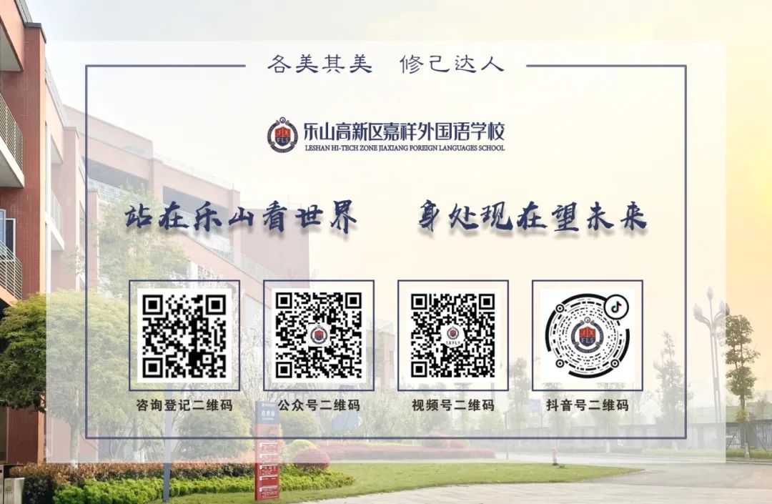 乐山嘉祥以“创中华名校,育国际英才”为办学目标,以“个性化、精品化、国际化”为特色,实施与嘉祥本部教育教学“四统一”(统一教材和教学计划、统一教学研究、统一考试、统一教育活动)的方略,培养身心健康、才情卓雅、学力通达、胸怀天下的阳光学子。