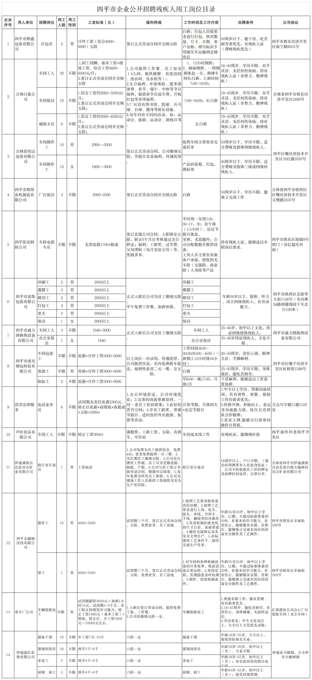 附:四平市“春风行动”2024年3月首批招聘残疾人就业岗位清单