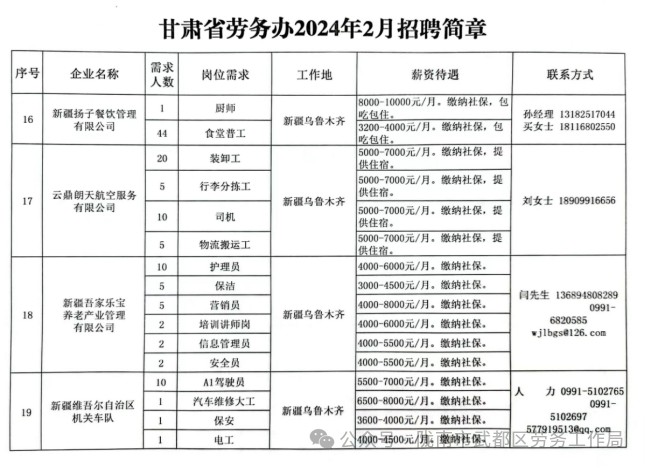 搜集到的招聘信息公布如下,欢迎有外出务需求的群众踊跃报名,积极参与。