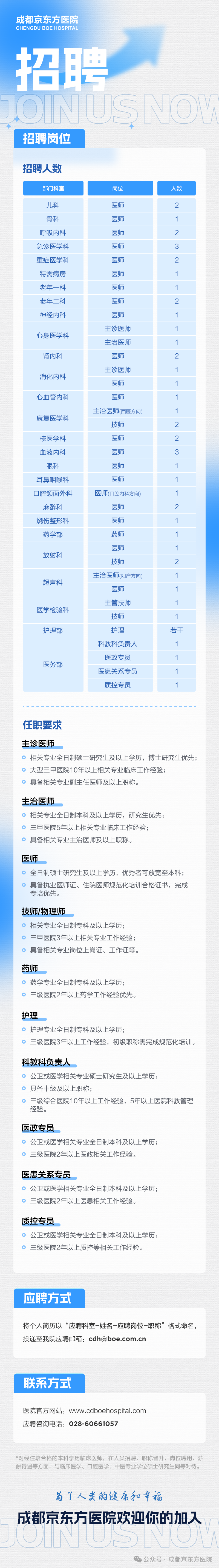 成都京东方医院是由京东方科技集团投资建设的集医疗、教学、科研、预防、保健、康复为一体的现代化大型三级综合医院。