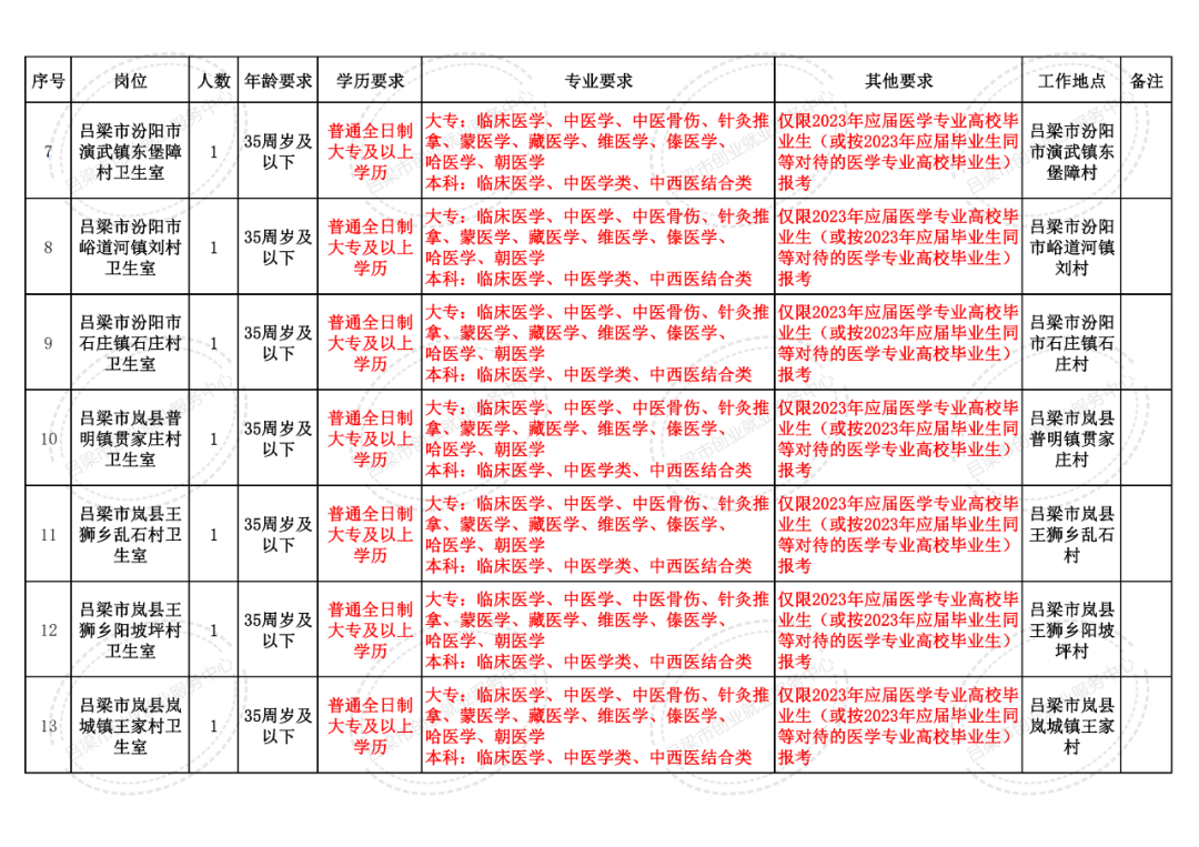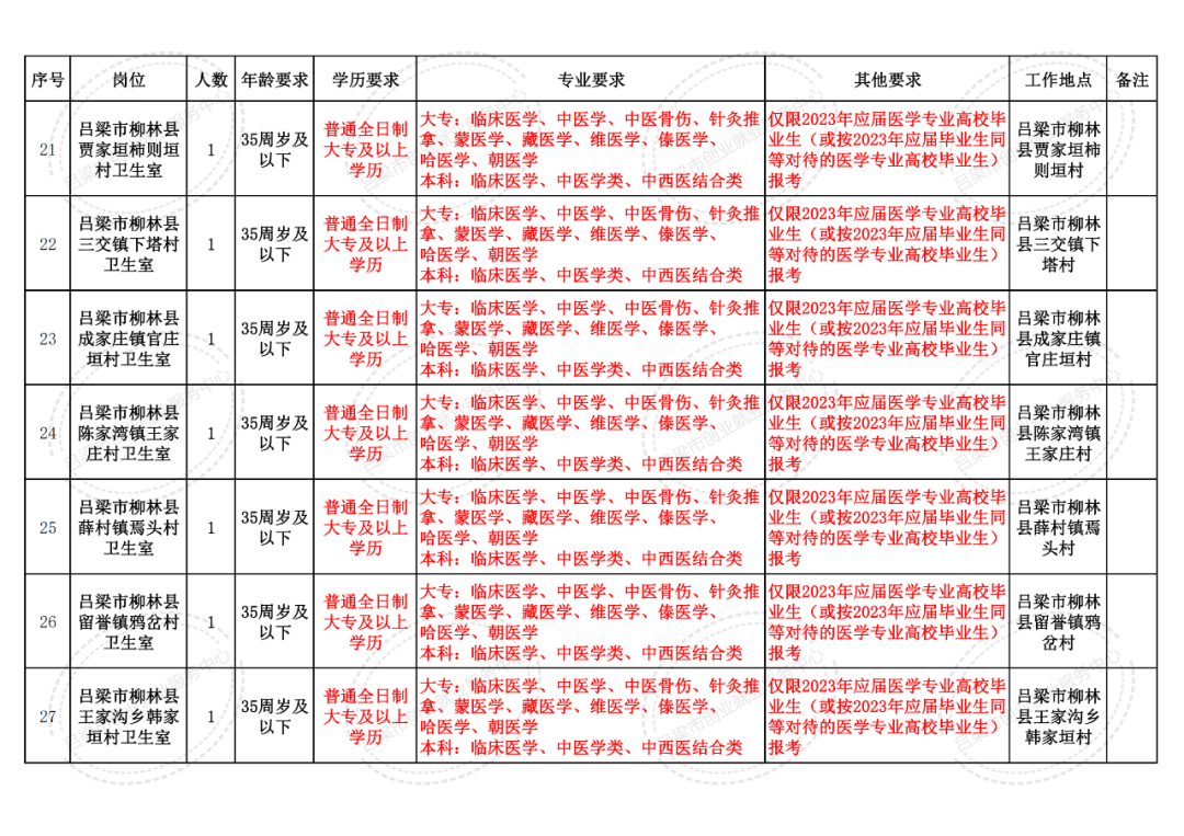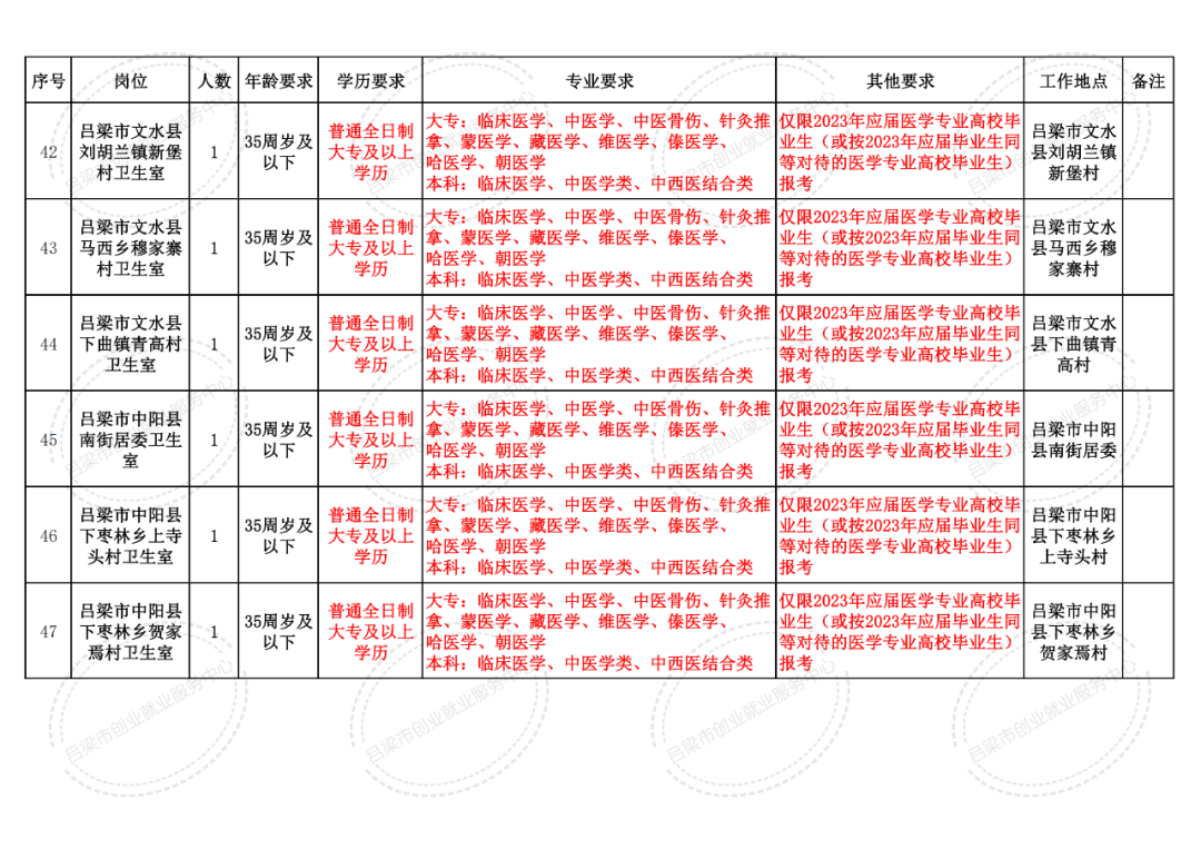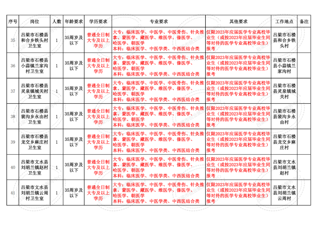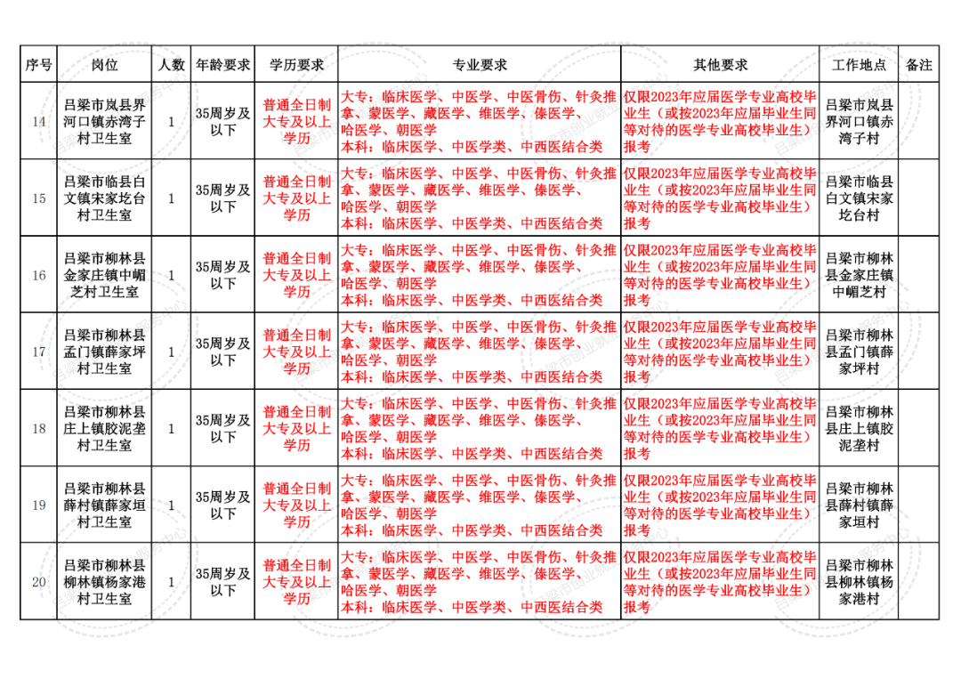 资格审查地点:吕梁市卫生健康委员会1309室