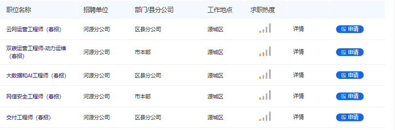 二、招聘岗位:大数据和AI工程师、云网运营工程师、双碳运营工程师、研发工程师、无线网络优化工程师、网信安全工程师、解决方案经理、交付工程师、政企客户经理等。