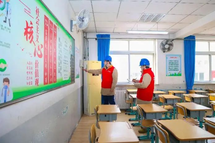 工作人员将学校配电间、食堂、水房、教室、广播室、楼道走廊的重要用电设施逐一检查并记录数据,分析用电有无异常,对发现的问题和隐患及时向校方反馈,指导做好相关解决措施。
