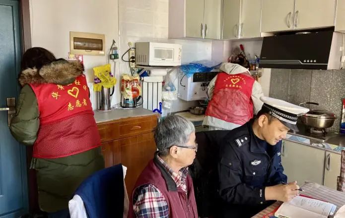 南开交警支队联合华章里社区志愿服务队和郁美净志愿服务队深入社区老年人家中,为老年人送上慰问品和有关书籍,与老人话家常的同时,还为老年人打扫屋内卫生,检查水电气安全。民警还结合正确过马路、安全上下公交车等与居民生活息息相关的场景讲解交通安全知识,引导老年人安全文明出行。