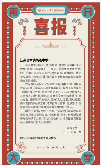 同时,南开大学也对我校表示了祝贺和感谢,并期盼能继续与贵校携手并肩,深化交流合作,为培育担当民族复兴大任的时代新人共同奋斗!