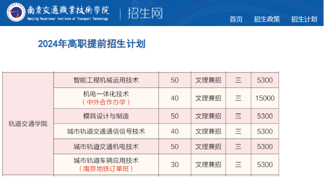举个南京铁道职业技术学院的例子:
