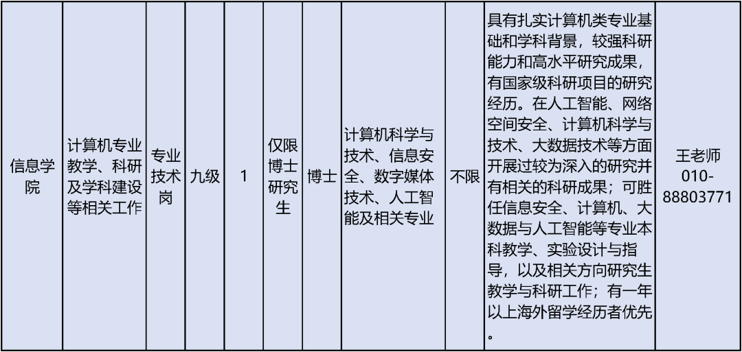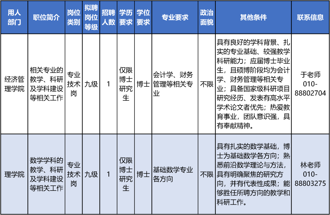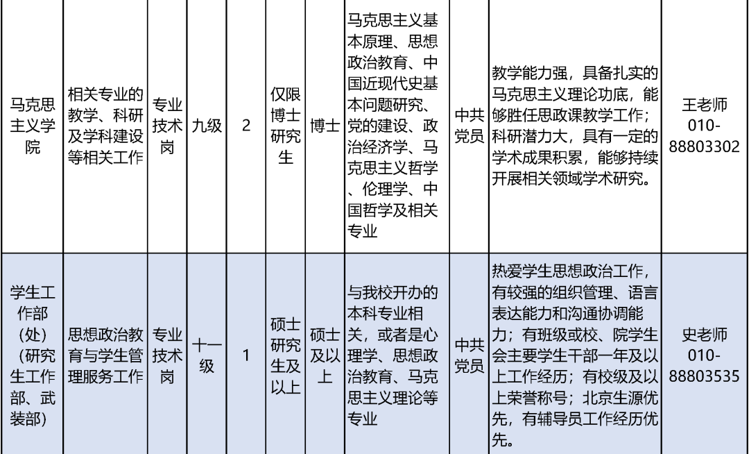 (五)应聘人员应符合北京市及学校就业落户相关工作要求,原则上应于2024年11月15日之前入职报到。非京生源毕业生须符合非京生源毕业生留京条件;国内博士后出站人员须符合全国博士后管理委员会关于进京落户的条件和要求;留学回国人员须符合教育部留学服务中心办理就业落户要求;京内调动人员应具有北京市常住户口且人事关系在北京,外埠进京人员符合北京市人才引进条件。
