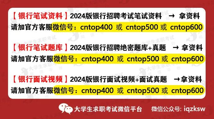 【银行笔试冲刺版】2024年银行冲刺版+真题 →拿冲刺版和真题资料请加官方客服微信1:cntop400 或 微信2:cntop500 或 微信3:cntop600