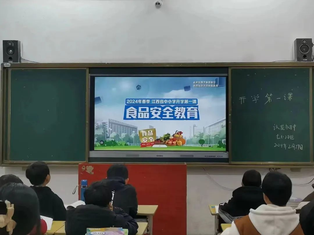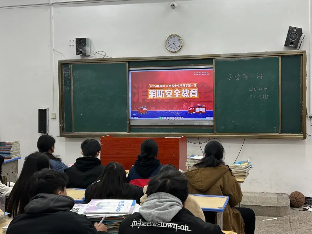 开学第一天,学校通过江西智慧教育平台统一组织各班收看“开学第一课”(消防安全)。课堂上,老师还详细讲解了校园安全知识,包括防火、防溺水、交通安全等方面的内容。学生们认真听讲,积极参与互动,并纷纷表示,今后会更加关注这些方面,提高自己的安全意识和素质。