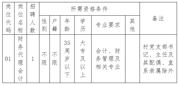因工作需要,经尚卿乡人民政府研究,决定面向社会公开招聘农村集体财务代理会计1名,现将有关事项公告如下: