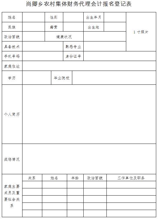 附件:尚卿乡农村集体财务代理会计报名登记表