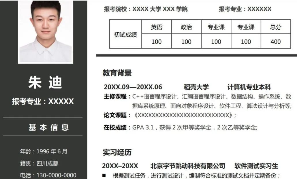 研究生复试简历模板
