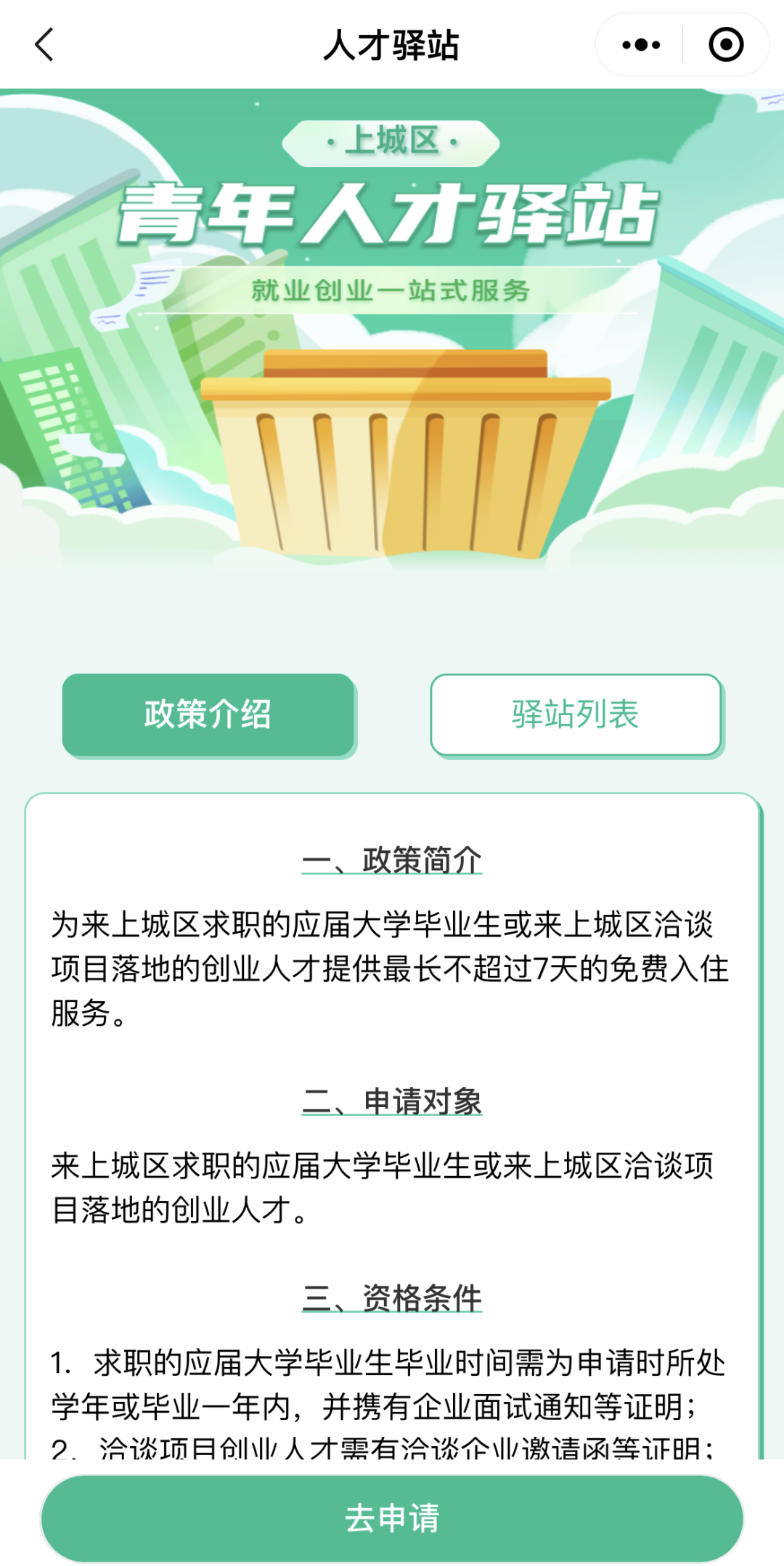 不仅是上城区,杭州多个城区推出了青荷驿站“免费住7天”福利,专门针对来杭参加求职面试、人才就业及创新创业赛事等活动的非杭户籍且无房的新市民和青年群体,为其提供7天免费短期住宿和就业创业服务。