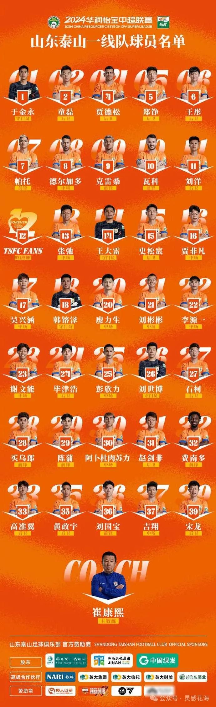 3月4日,山东泰山队在公布了2024中超联赛一线队球员名单。这份名单里有着球队核心的阵容,以及一些让人眼前一亮的新变化。