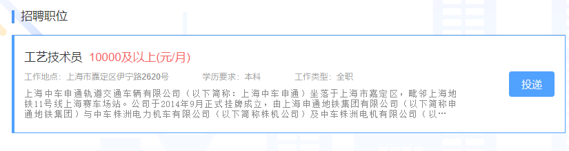 上海中车申通极其重视人才工作,将提供具有行业和地区竞争力的薪酬。应届毕业生根据其学历和学校层次,发放一次性安家费,其中普通本科1万元、211本科1.5万、重点本科2万、C9本科与硕士研究生4万元。上海中车申通也将提供丰富的福利待遇,公司为应届毕业生提供公司宿舍作为过渡,不居住公司宿舍且上海地区无自有住房,将发放每月800元住房补贴,共发放5年。公司提供平价食堂,每月发放500元餐补,按个人应资合计缴纳六险三金(除正常五险一金,另有补充商业医疗保险、补充公积金、企业年金),发放十三薪,凭工作证免费乘坐上海市地铁等等。