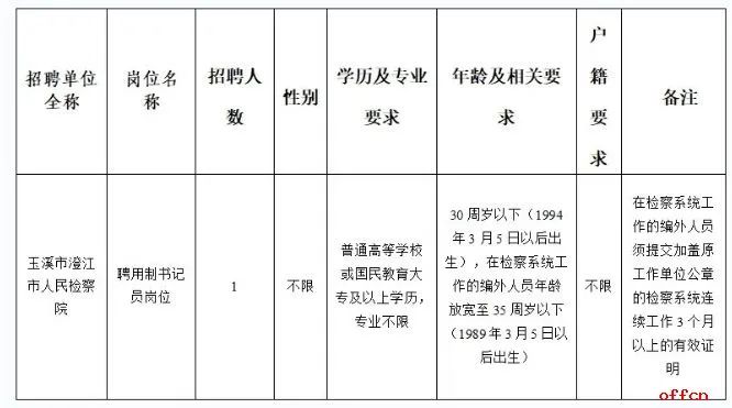 根据工作需要,按照《云南省各级人民法院、人民检察院聘用制书记员管理制度改革实施办法(试行)》《云南省检察机关考试招聘聘用制书记员实施办法(试行)》的有关规定,玉溪市澄江市人民检察院委托澄江市启澄人力资源有限责任公司面向社会公开招聘聘用制书记员,现将有关事项公告如下: