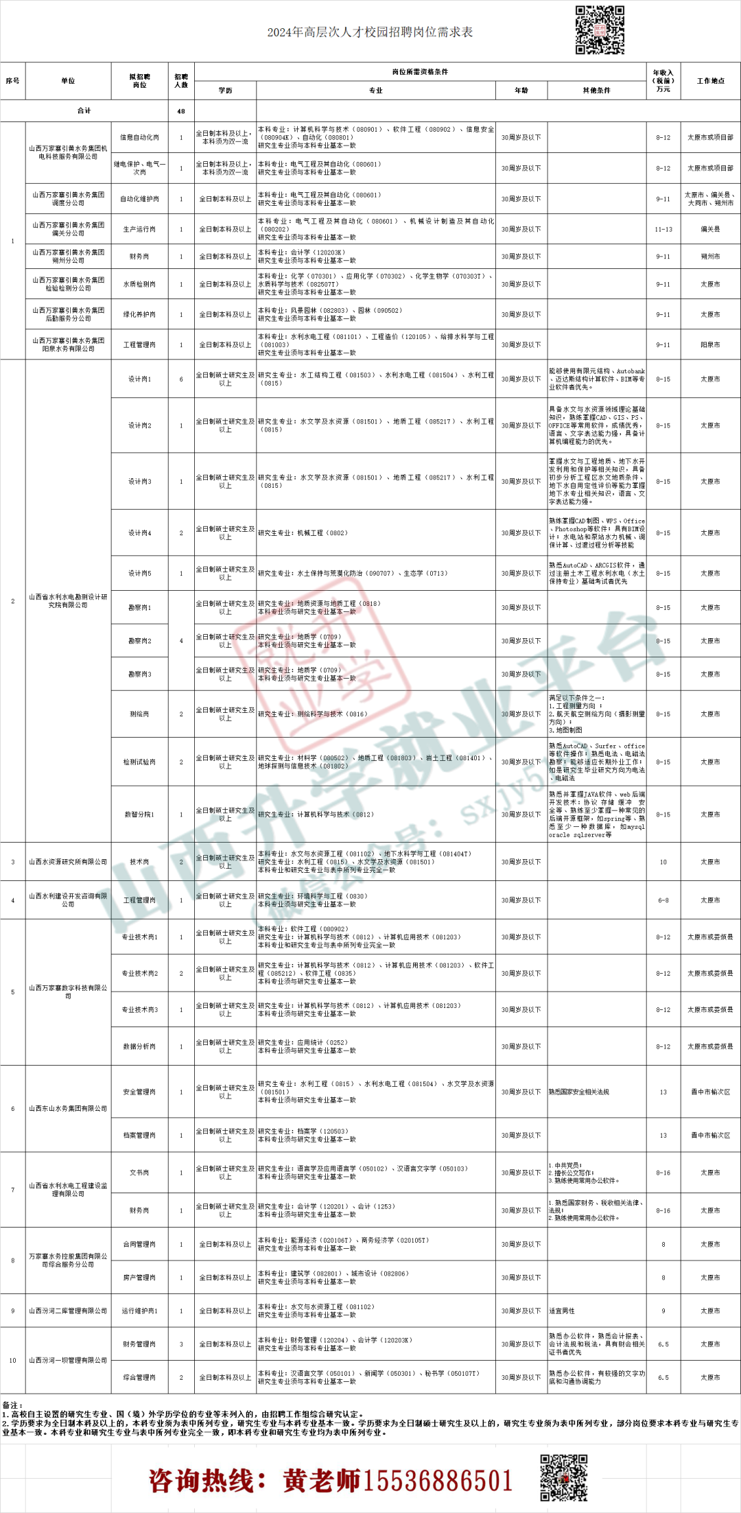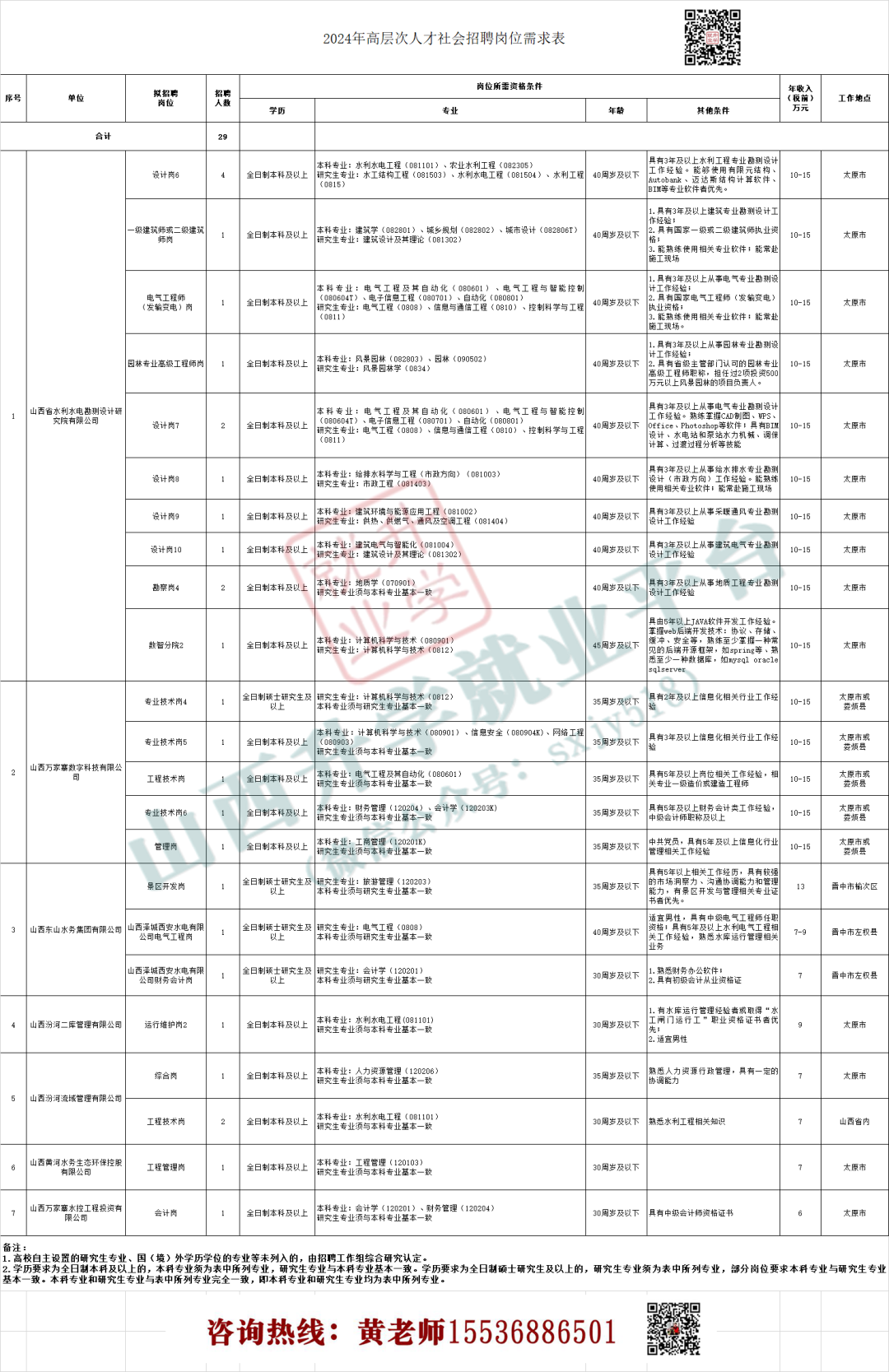 万家寨水务控股集团有限公司及所属企业2024年高层次人才(第一批)招聘公告