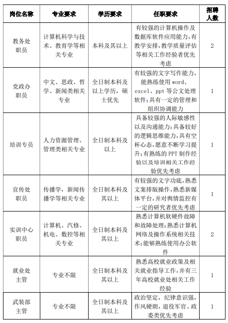 学校现面向社会引进各专业专、兼职教师和行政岗人员。