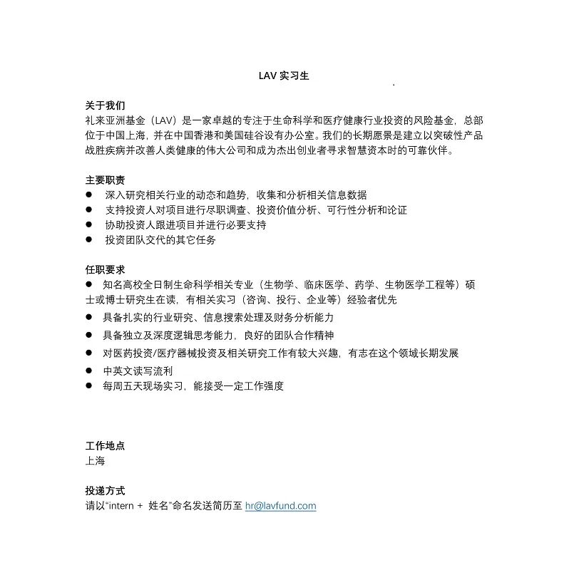 礼来亚洲基金实习生招聘(上海)