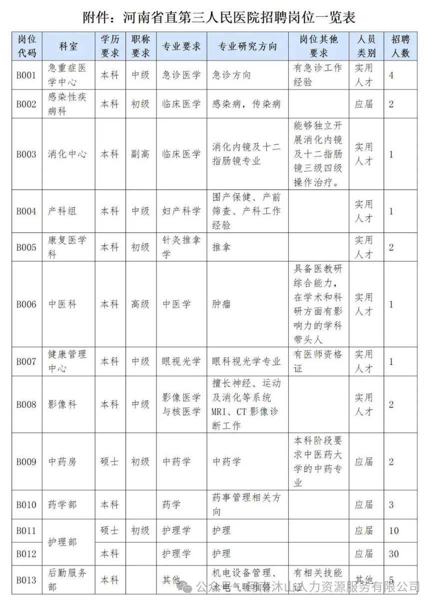 本次招聘硕博专业技术人员共64人,具体岗位及要求详见附件《河南省直第三人民医院招聘岗位一览表》。