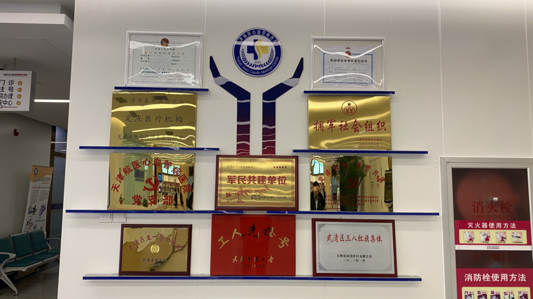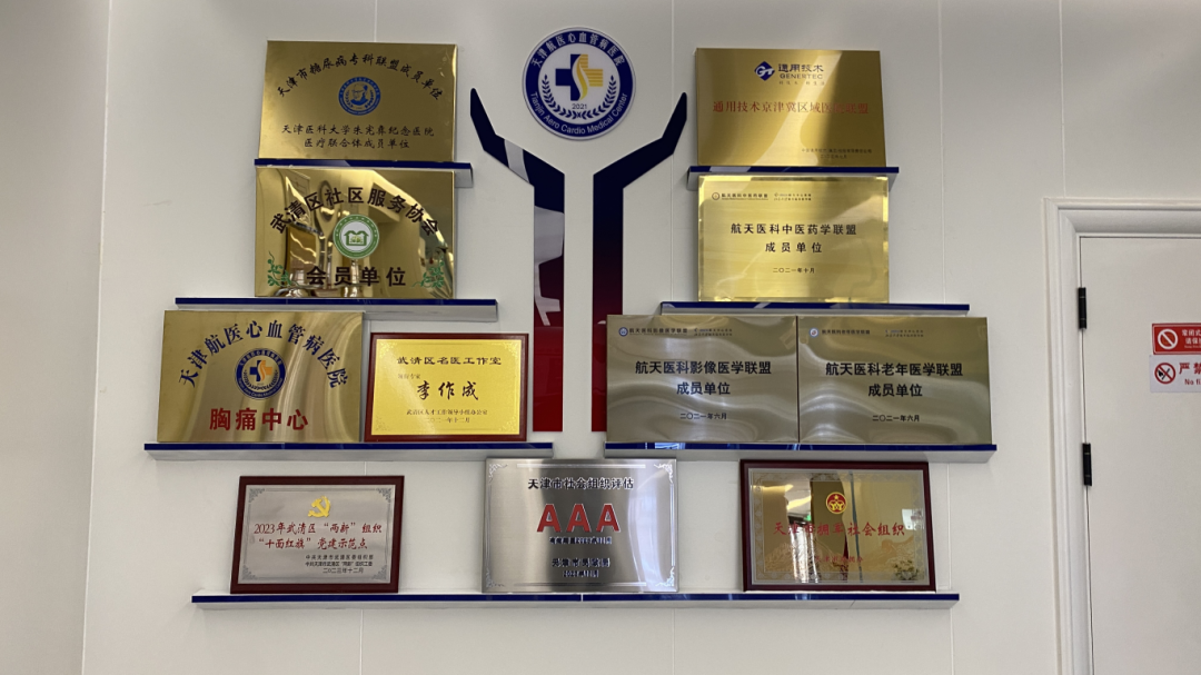 医院设有心脏中心李作成医疗质控院长和影像科王振山主任两位区级专家名医工作室,获得武清区2022年五一劳动奖状、获得2022年天津市工人先锋号、2023年武清区三八红旗手(集体)等荣誉称号,现为天津市心内科质量控制中心成员单位、天津民非单位评估3A级单位、天津市糖尿病专科联盟成员单位、天津医科大学朱宪彝纪念医院医疗联合体成员单位、与首都大学三博脑科医院签约单位、天津大学联合成立博士后科研工作分站单位、武清区干部体检定点单位、武清区人才体检定点单位、天津市工会劳模体检定点单位、中国人民健康保险股份武清区职工补充医疗保险定点医院、武清区拥军优抚合作医院、公安武清分局医疗保障单位、武清区武装部军民共建单位。