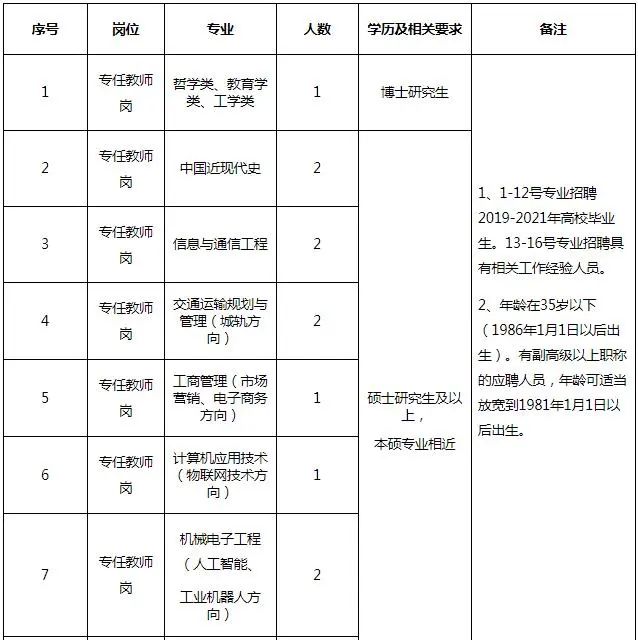 7.招聘一览表中1- 12号专业招聘2019-2021年高校毕业生,13-16号专业招聘具有相关工作经验人员。