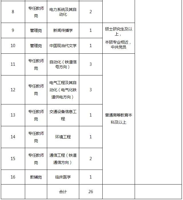 本次面向社会公开招聘工作人员26名,具体专业、人数等详见附件《洛阳铁路信息工程学校2021年公开招聘工作人员一览表》。