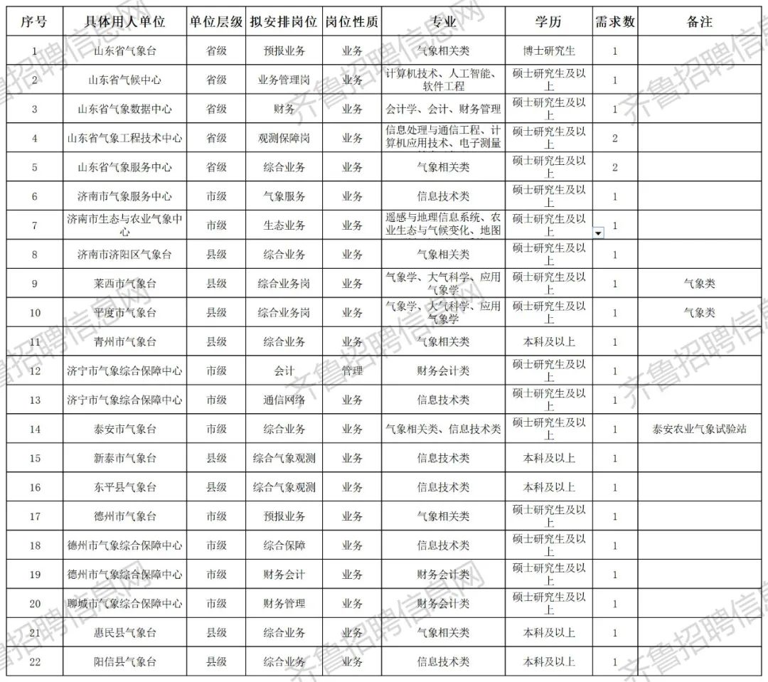 山东省气象部门2024年度事业单位公开招聘普通高校应届毕业生公告为做好山东省气象局2024年度事业单位公开招聘普通高校应届毕业生招聘工作,根据《事业单位人事管理条例》和《气象部门事业单位公开招聘人员管理办法》等有关文件的规定,现将本批次招聘公告如下: 一、招聘岗位 山东省气象部门2024年度公开招聘国家气象系统事业编制毕业生24人,其中博士生岗位1人,研究生岗位18人,本科岗位5人。具体信息详见《山东省气象局2024年度事业单位招聘本科以上毕业生需求信息明细表》(附件1)。 二、应聘条件 (一)具有中华人民共和国国籍,遵守中华人民共和国宪法和法律; (二)年龄在35周岁以下; (三)应届高校毕业生(指参照人力资源社会保障部门规定,纳入国家统一招生计划、持有毕业生就业协议且在择业期内未落实工作单位的普通高校毕业生); (四)拥护中国共产党领导和社会主义制度,政治立场坚定; (五)具有良好的品行和职业道德,热爱气象工作; (六)具有与招聘岗位要求相符的学历、学位、专业或技能条件; (七)具有正常履行职责的身体条件和心理素质; (八)具备岗位所需要的其他资格条件。 三、招聘方式 博士研究生、气象类专业的考生采取直接面试方式,其他考生采取先笔试后面试的方式进行。 四、招聘程序 (一)报名:登录气象人才招聘系统注册报名。报名时间从2024年3月6日08:00至2024年3月15日16:00,非报名时间段内收到的报名材料不予受理。每人限报1个岗位,注明是否服从调剂。报名人员按最高学历的专业报考,可报考同学历层次及以下学历层次的岗位。 (二)资格审查:山东省局人事处负责资格审查工作。根据应聘考生提交的信息资料,对考生进行资格审查。应聘毕业生填写的报名信息必须真实、全面、准确。对主要信息(如所学专业等)填报不实的,按弄虚作假处理;对填报不全、格式不规范导致未通过资格审查的,责任自负;对提交信息不全、内容不规范的,不予审核。应聘考生恶意发送报考信息、扰乱报名秩序的,一经查实,取消报考资格。 (三)笔试、面试:笔试由第三方考试机构组织实施,考试种类为山东省事业单位公开招聘工作人员综合类考试,考试内容为职业能力测验与公共基础知识。根据笔试成绩,按每个岗位1:3的比例确定参加面试人选,对于最后1名笔试成绩出现并列者,则均确定为面试人选。 笔试时间拟定于2024年3月22日在济南进行,面试时间拟定在2024年3月下旬进行。具体事宜请关注山东省气象局官网、气象人才网公告。 (四)成绩计算:考试综合成绩由笔试和面试成绩合成,笔试、面试成绩各占50%。面试成绩采用百分制计分(保留2位小数),面试合格分数线为75分。根据应聘考生综合成绩,按岗位招聘计划1:1比例从高分到低分的顺序确定体检和考察对象。若综合成绩相等,以笔试成绩高者确定体检和考察对象。符合岗位调剂要求的,根据应聘考生的学历层次、专业类别、综合成绩从高分到低分的顺序,以及专业与岗位匹配性等方面进行调剂。 五、体检及考察 体检参照现行的公务员录用体检通用标准,由我局统一组织到指定医院进行体检。应聘考生未按规定时间、地点参加体检的,视为自动放弃。 人事部门根据体检结果确定考察对象,对其思想政治表现、道德品质、综合素质、学业成绩、研究论文、社会实践等情况进行考察,同时对其资格条件进行复查。 考察合格的,确定为拟聘用对象。 六、公示与聘用 考察合格人员,经省气象局确认后为拟聘用人员。拟聘用人员名单将在山东省气象局官网公示7个工作日。公示无异议后,签订就业协议。经中国气象局批复后,办理入职手续。 七、其他事宜 (一)应聘考生自愿放弃聘用资格的,以及未按规定时间参加体检或体检考察不合格、公示结果影响聘用等出现岗位空缺时,根据考试成绩进行递补及调剂。 (二)有关招聘信息将通过我局官方网站发布,应聘考生应及时了解网站发布的最新招聘信息,因本人原因错过重要信息而影响考试及聘用的,责任自负。 气象人才招聘系统:http://zp.cmatec.cn 山东省气象局官网:http://sd.cma.gov.cn/ 单位地址:山东省济南市天桥区无影山路12号 邮编:250031 联系电话:0531-81603554 监督电话:0531-81603572 附件:1.山东省气象局2024年度事业单位招聘本科以上毕业生需求信息明细表 2.气象部门人员招录专业目录(2024年版) 山东省气象局 2024年3月5日 温馨提示:以上附件的详细信息,您还可以点击左下角“阅读原文”下载查看 点击上方公众号名片链接 查看山东最新招聘信息 温馨提示:我们属于非官方账号,所发信息来自网络,最终解释权归招聘单位,如有疑虑,请查看招聘单位官方渠道信息,如有侵权和其他问题,请联系我们删除。如有疑问,请加微信:gkzlk8。 |