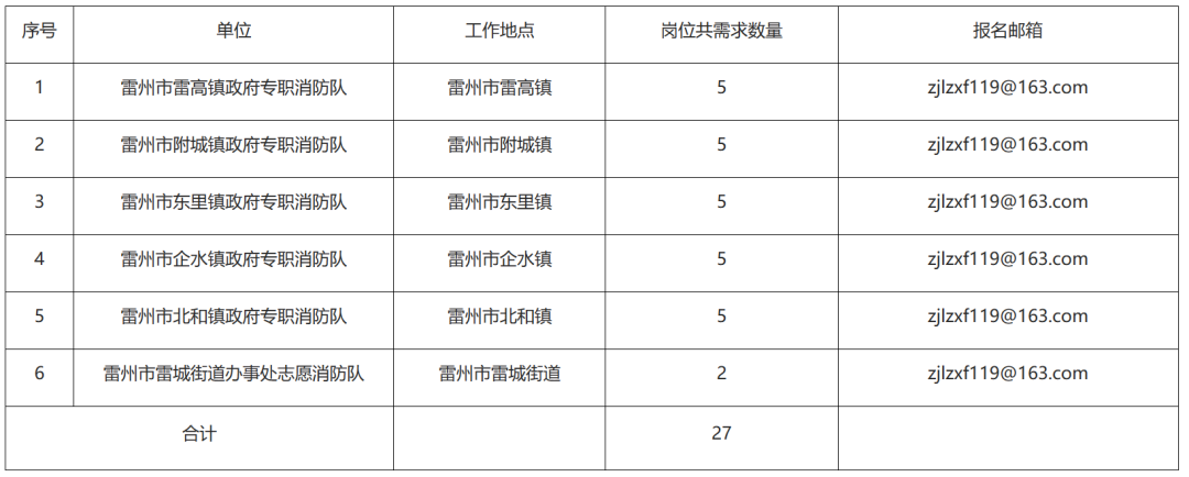 原标题:雷州市雷高镇、附城镇、东里镇、企水镇、北和镇人民政府和雷城街道公开招聘合同制消防员公告