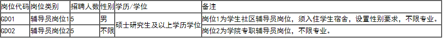 (1)报名时间:从公告发布之日起,全年有效,招满即停。(2)报名方法:采用网上报名,符合岗位报考条件人员,请填写《广西民族师范学院2024年公开招聘报名登记表》(附件下载),并连同求职材料一并打包压缩后发送至人事处邮箱,邮件和附件名称统一命名为“岗位编码+应聘部门+姓名+高校人才网”。应聘者须按照要求提交报名材料,不按照要求提交者将视为无效报名,资格审查不予通过。【快捷投递:点击下方“立即投递/投递简历”,按要求上传应聘材料进行职位报名】①《广西民族师范学院2024年公开招聘报名登记表》(见附件)。③自荐材料。提供身份证、毕业证和学位证(从高中毕业之后填报)、毕业生就业推荐表(2024年应届毕业生提供)、招聘岗位要求所需资格证、英语、计算机等级证书等的扫描件;学习或工作中获得的成果、奖励情况等证书的扫描件;发表的主要论文、著作、参与或完成的科研项目材料的扫描件等。应聘人员应本着诚实守信原则,确保以上信息的真实性。凡提供不实信息的责任自负,以不实信息获得工作机会的,一经查实予以解聘。由招聘部门对岗位应聘人员的基本条件进行资格审查,将通过资格审查的入围考生名单报学校人事处审核、备案。资格审查贯穿招聘工作全过程,如发现应聘者的信息不符合招聘资格条件要求的立即取消其应聘资格。具有博士研究生学历学位或正高级职称的按照招聘岗位1:1的比例直接面试。(2)考核内容主要包括应聘者的政治思想、遵纪守法、道德品质、能力素质、学习和工作表现、岗位匹配度等方面的情况。同时对应聘人员资格条件进行复查,发现有不符合招聘条件者,经核准后,取消其考核和聘用资格。根据考核结果,经学校专题会议研究,择优确定拟聘用人员,按《关于进一步规范事业单位公开招聘体检工作有关问题的通知》(桂人社规[2019]11号)及相关规定开展体检工作,体检标准参照公务员录用体检标准执行,体检费用由拟聘人员自理。根据面试、体检、考核综合情况,研究确定拟聘人员。如考核人选不适合所聘岗位工作需要的,该招聘岗位空缺。确定拟聘人选后将拟聘人员面向社会公示7日。公示内容包括拟聘人员姓名、性别、专业、学历学位、拟聘岗位等。公示信息在广西民族师范学院官网(http://www.gxnun.edu.cn/)发布。经公示无异议人员,按有关规定办理聘用手续并在广西人社厅和编办备案、登记,签订事业单位聘用合同。本次招聘专职辅导员共10名,均安排在学校桂林校区工作,具体岗位信息如下: