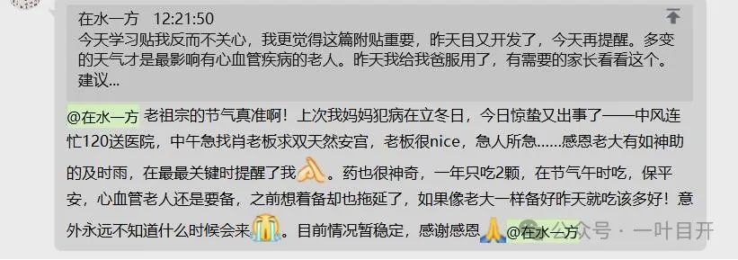前天和昨天,一方都提醒了大家要关心家中有心血管疾病的老人,所以在一叶两个粉丝最多的号都发了提醒。