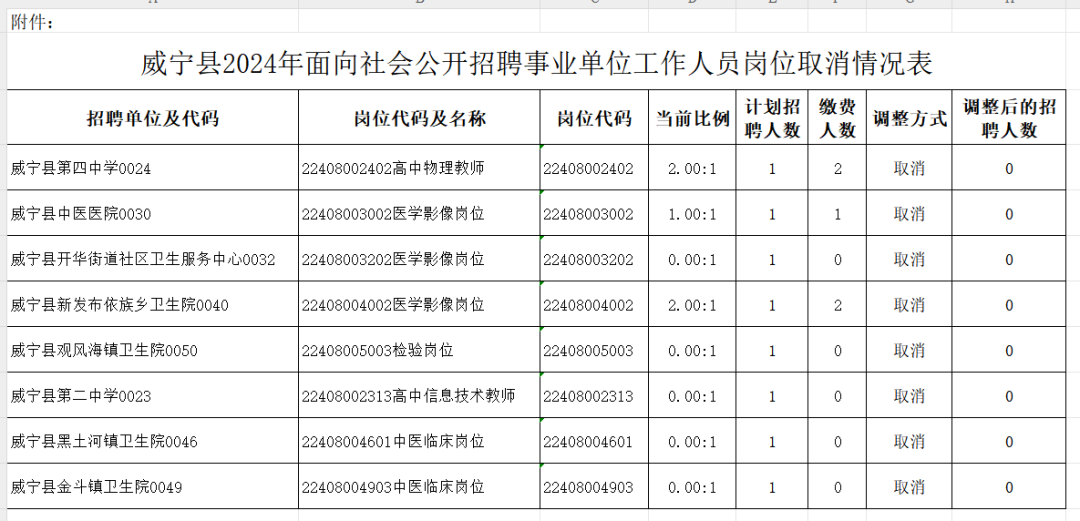 威宁县2024年面向社会公开招聘事业单位工作人员部分岗位招聘取消的公告