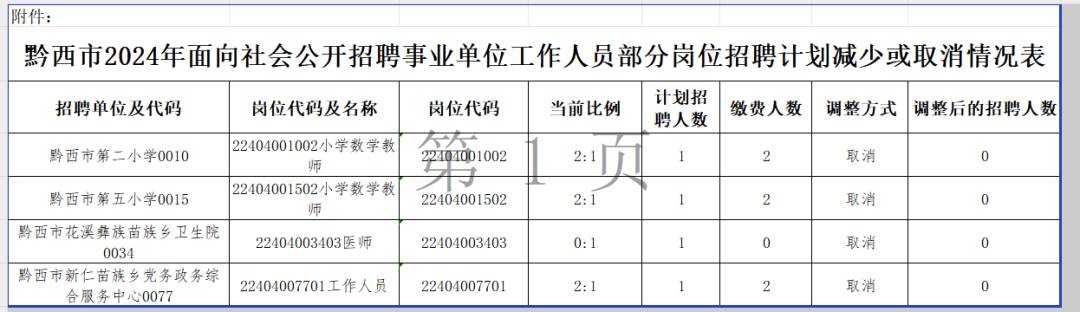 黔西市2024年面向社会公开招聘事业单位工作人员部分岗位招聘计划减少或取消的公告