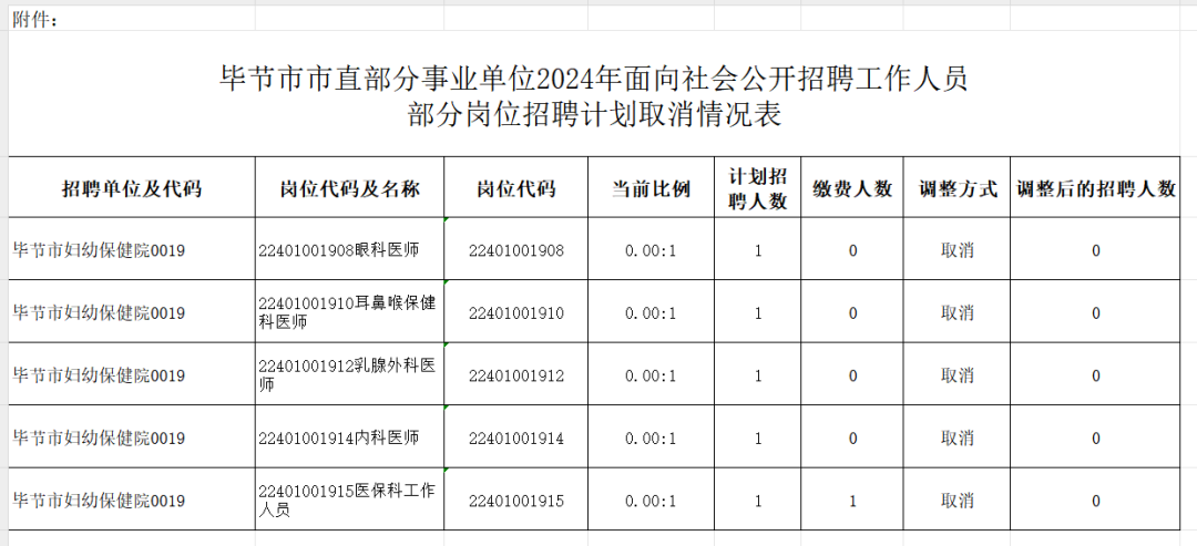 毕节市市直部分事业单位2024年面向社会公开招聘工作人员部分岗位招聘计划取消的公告
