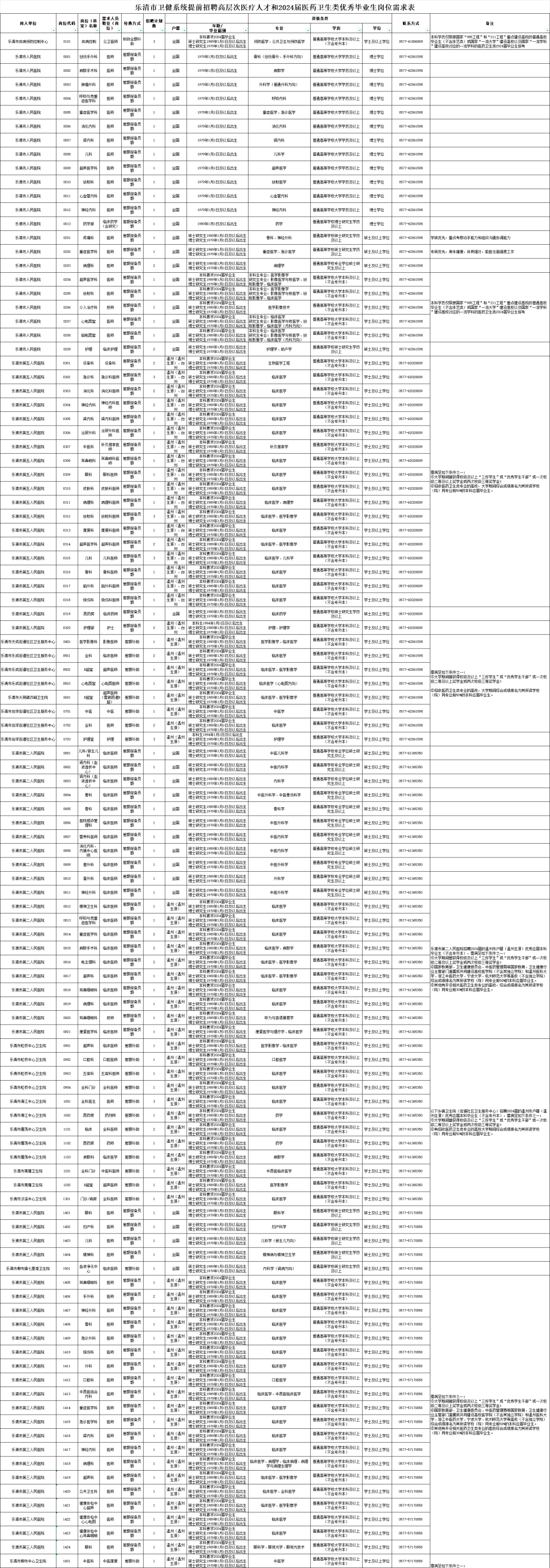 1、招聘岗位详见《乐清市卫健系统提前招聘高层次医疗人才和2024届医药卫生类优秀毕业生岗位需求表》(附件1)